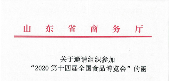 展會(huì)快訊丨山東省商務(wù)廳關(guān)于邀請(qǐng)組織參加“2020第十四屆全國(guó)食品博覽會(huì)”的函